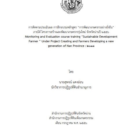 การติดตามประเมินผลการพัฒนาองค์ความรู้และการนำความรู้ไปใช้ประโยชน์ภายใต้โครงการสร้างและพัฒนาเกษตรกรรุ่นใหม่(หลักสูตรการพัฒนาเกษตรกรอย่างยั่งยืน)